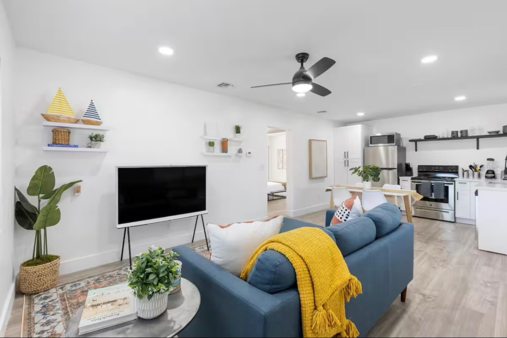 - Open concept living and kitchen area with high-end finishes